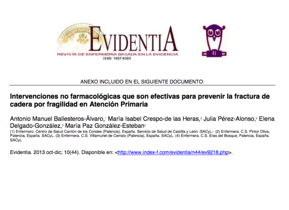 Ejemplo de búsqueda de evidencias científicas de la revista Evidentia, Fundación Index (2013). A partir de una pregunta formulada según el formato PICO los autores describen las palabras clave seleccionadas, las cadenas de búsqueda empleadas y los resultados obtenidos (enlace).